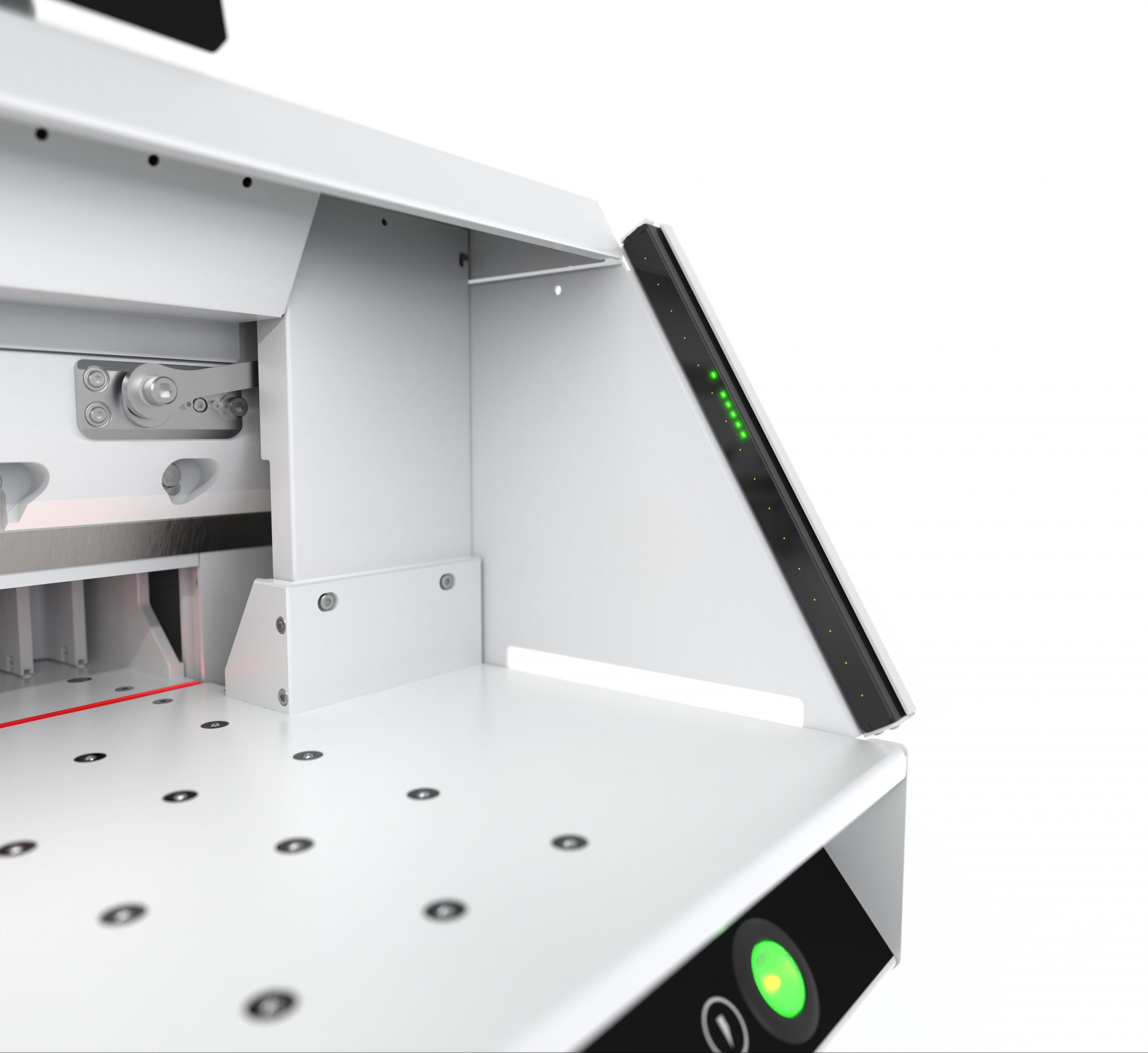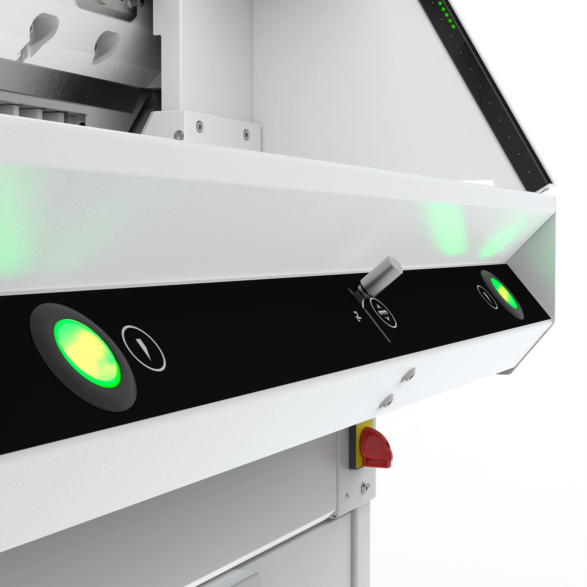 Safe true two-hand operation: A cut can be executed conveniently and safely by means of the EASY-TOUCH blade activating buttons with integrated optical signals indicating the operational status.