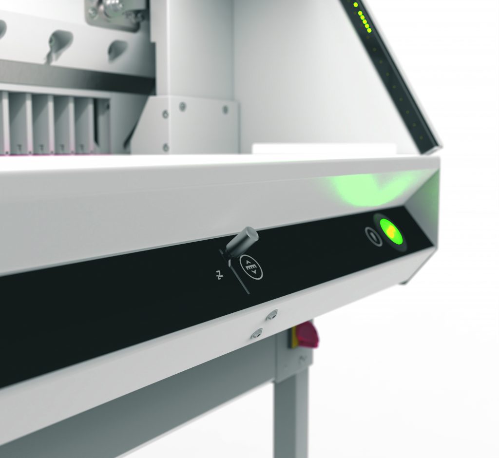 Safe true two-hand operation: A cut can be executed conveniently and safely by means of the EASY-TOUCH blade activating buttons with integrated optical signals indicating the operational status.