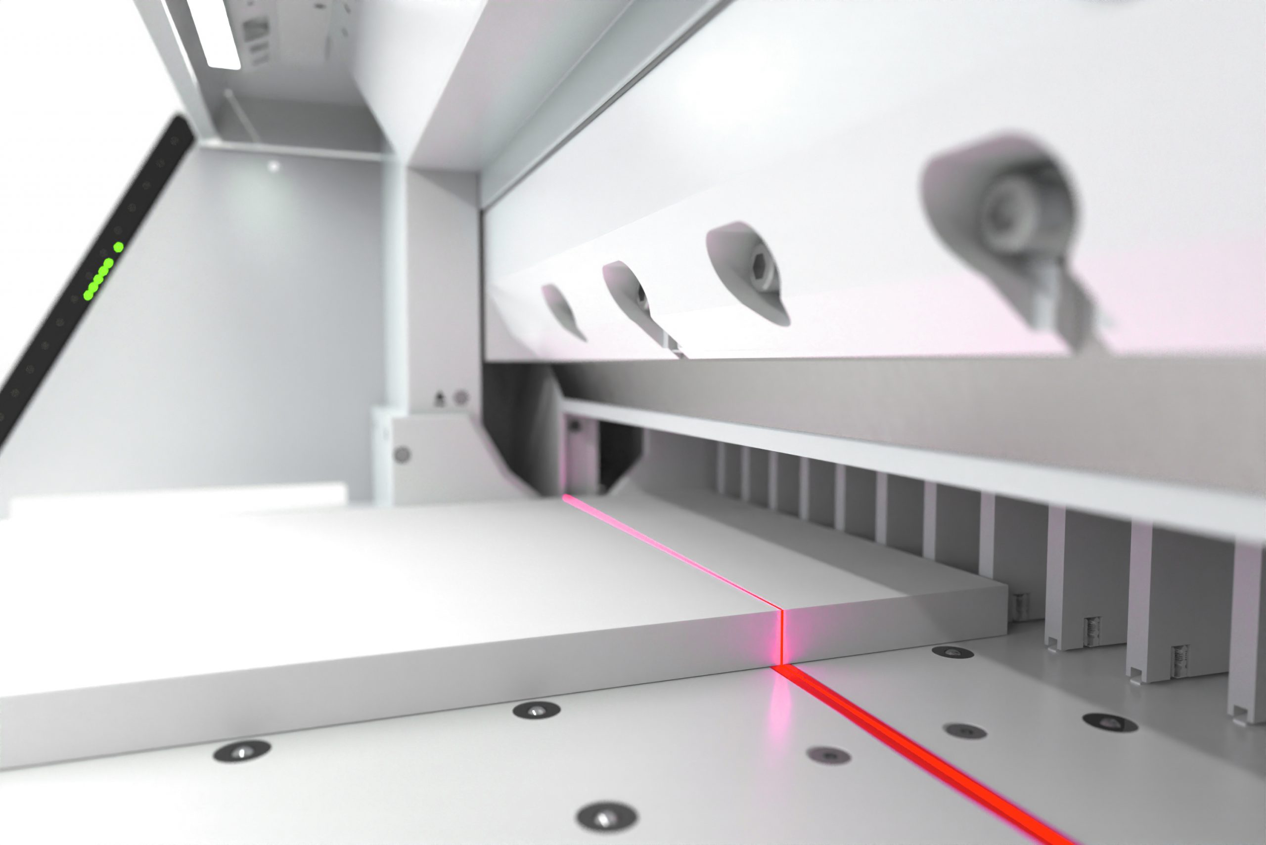 Safe true two-hand operation: A cut can be executed conveniently and safely by means of the EASY-TOUCH blade activating buttons with integrated optical signals indicating the operational status.