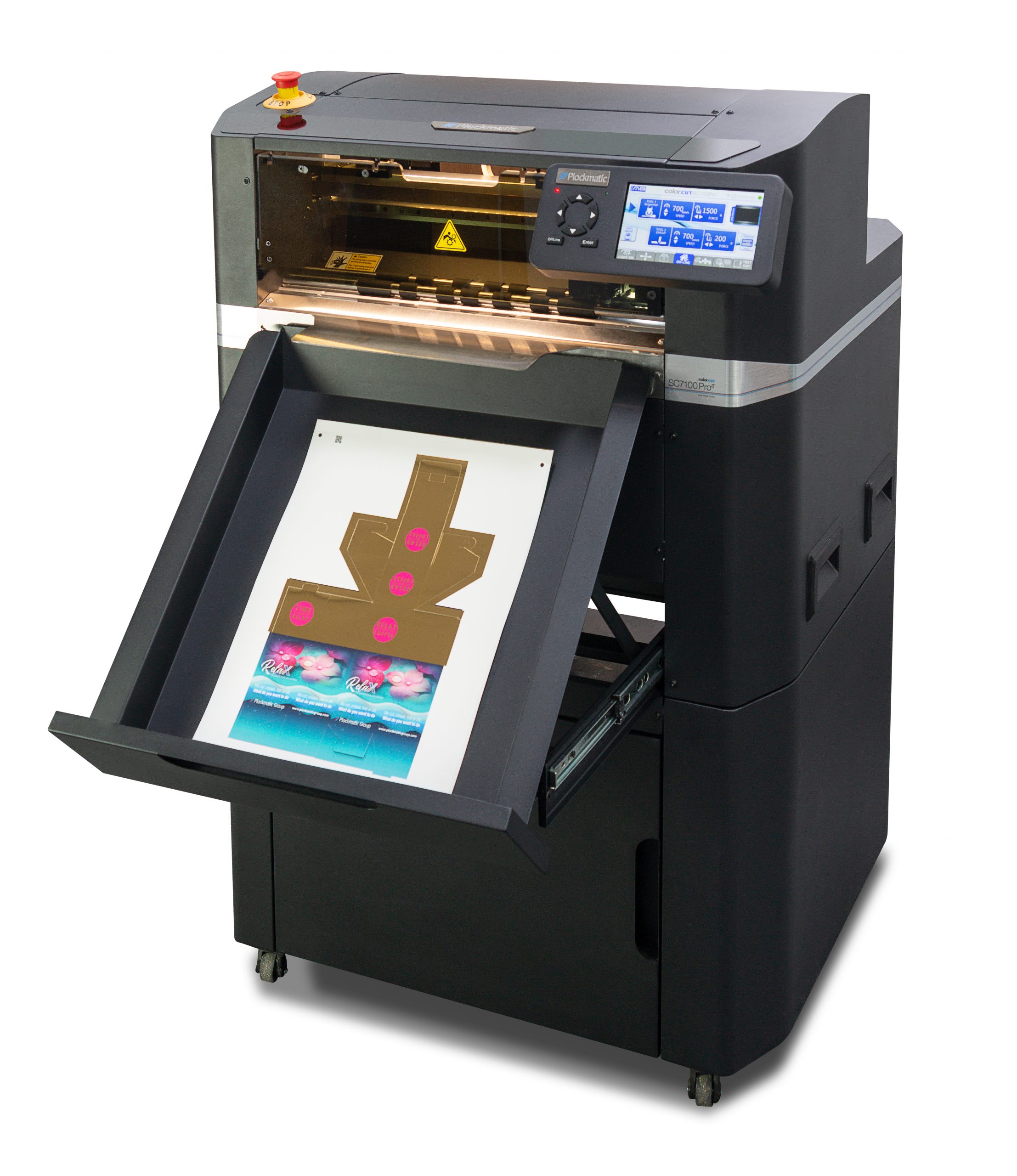 The ColorCut SC7100 Pro-T model – Combining ultra-reliable feeding with an instant job retrieval system and high-speed cutting and tangential creasing.